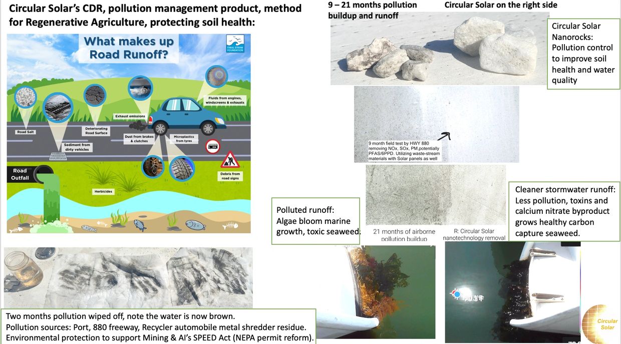 Our innovations can offer a sustainable and competitive edge and a new revenue stream by merging land use, new solar technology, de-pollution tech and integrating the circular economy while mining and even recycling US Critical Minerals for the Energy Transition.